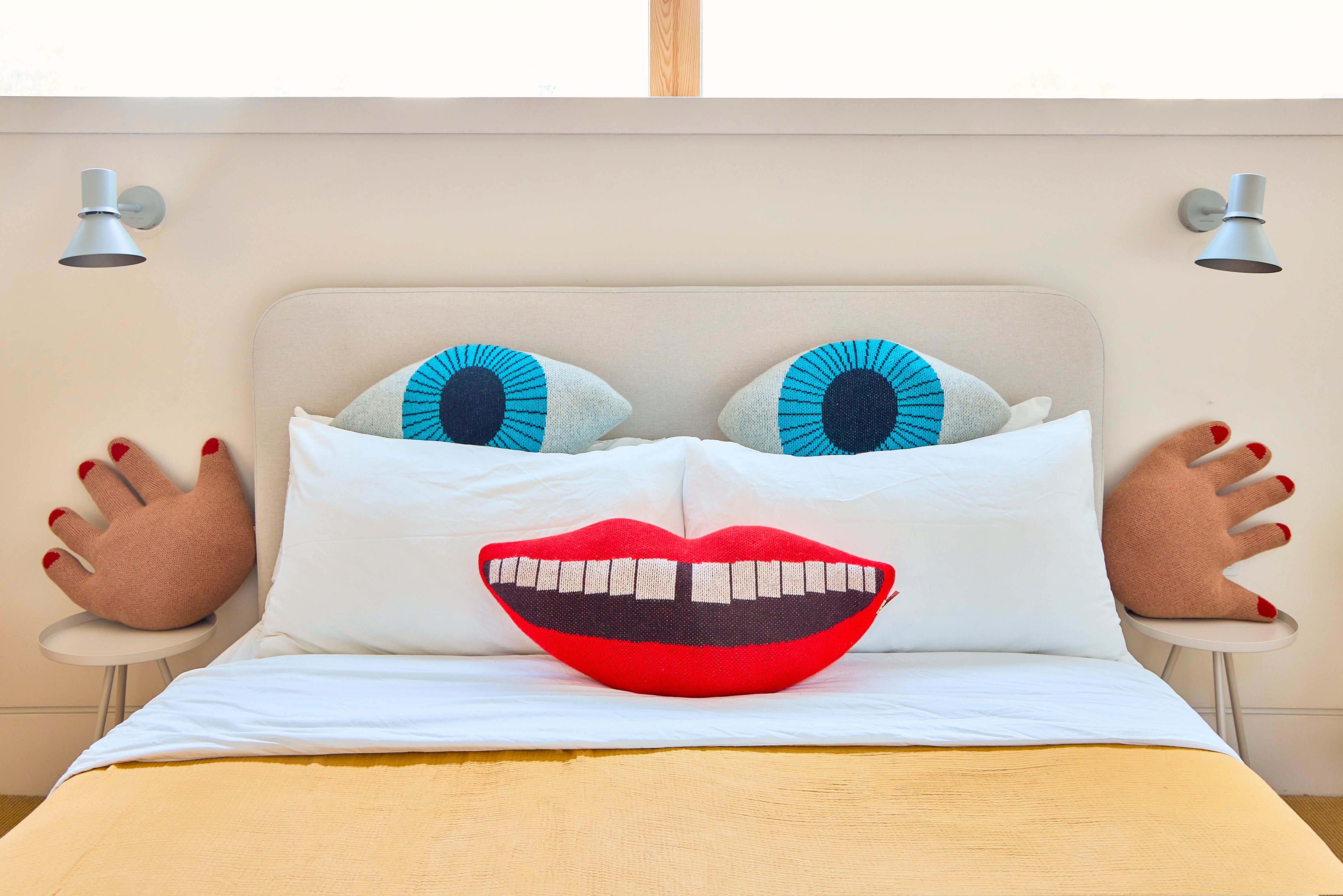 Designed in the UK, this smile shaped cushion is made from soft Scottish lambswool and hand-finished in London. Cozy, quirky, and perfect for relaxing or brightening up any space.